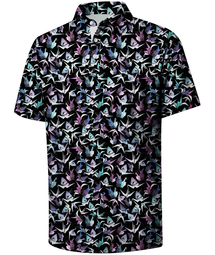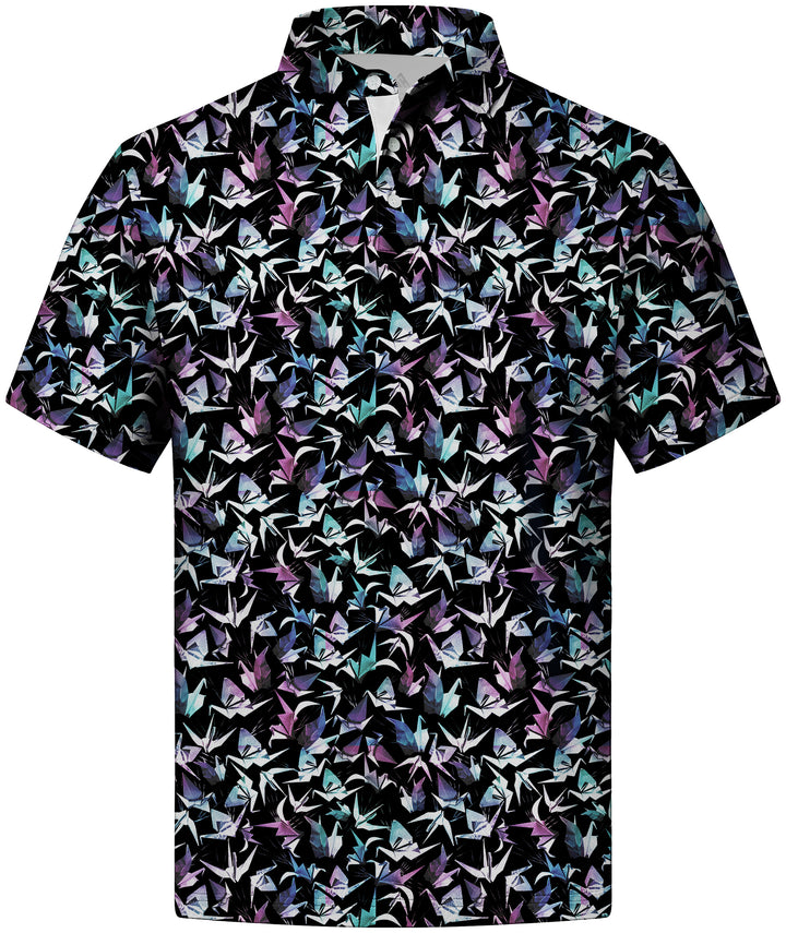 Men's Button Up Print Slim Fit Polo Shirt-CFMPO00149