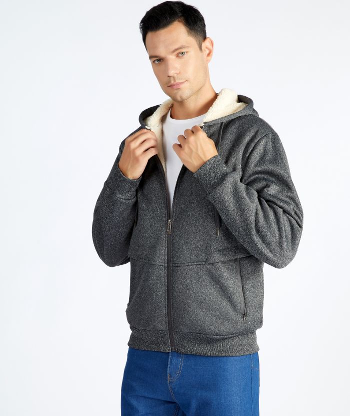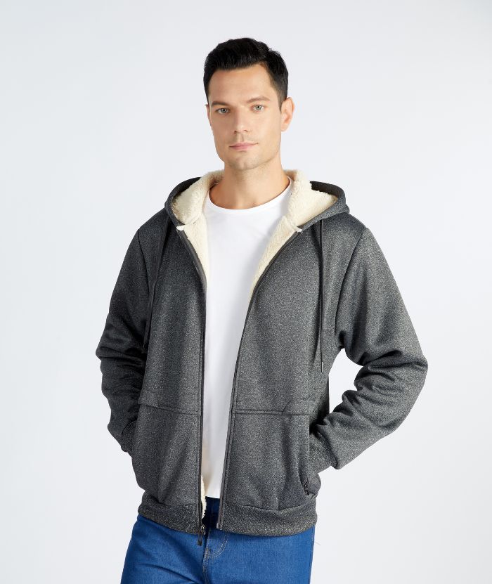 Men's Full Zip Up Solid Color Fleece Hoodie-CFMWY00022