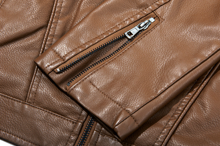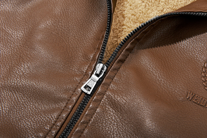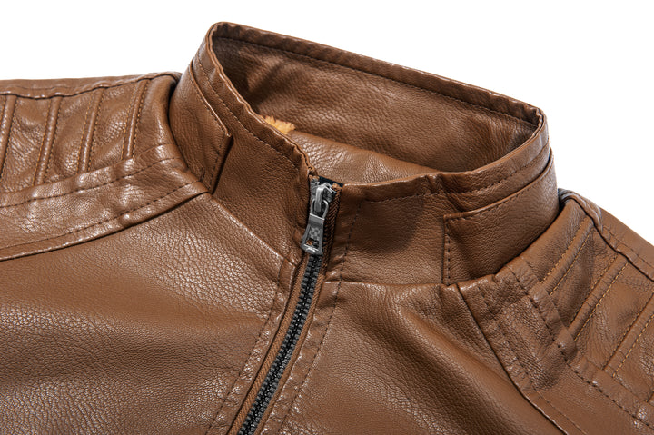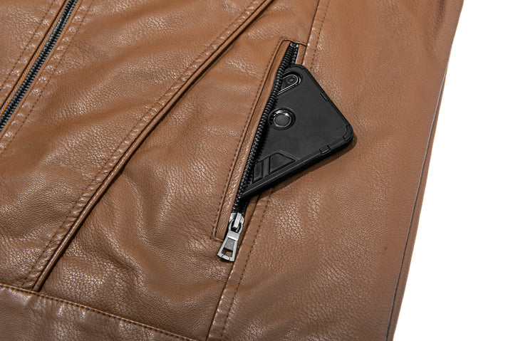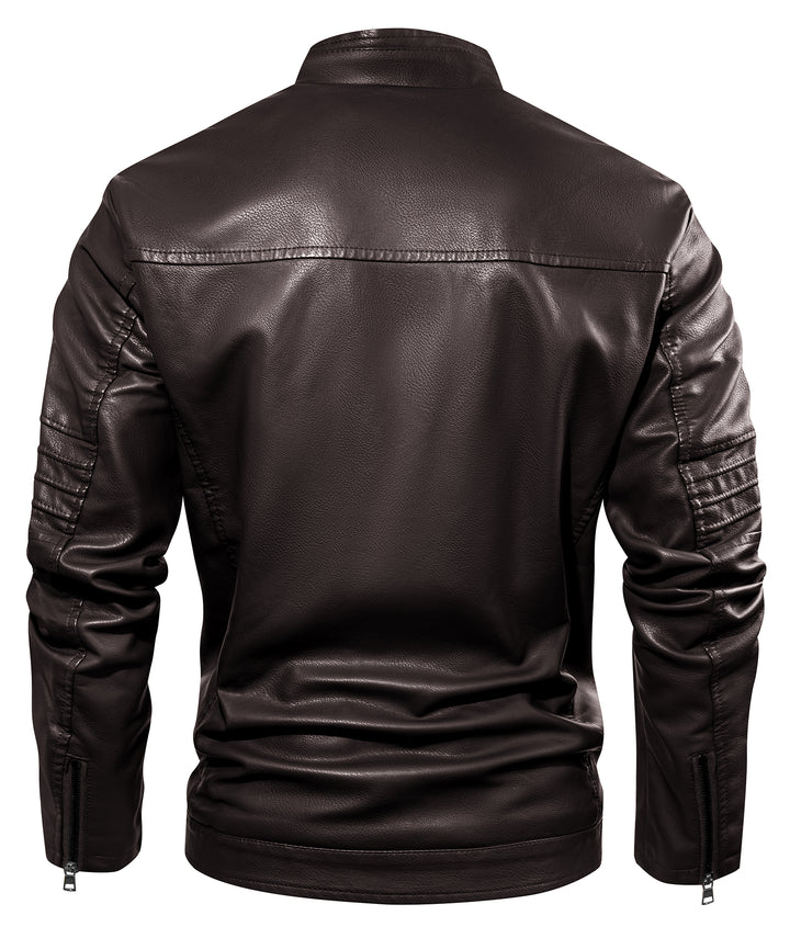 Men's Full Zipper Regular Fit Leather Jacket-ZPK007130