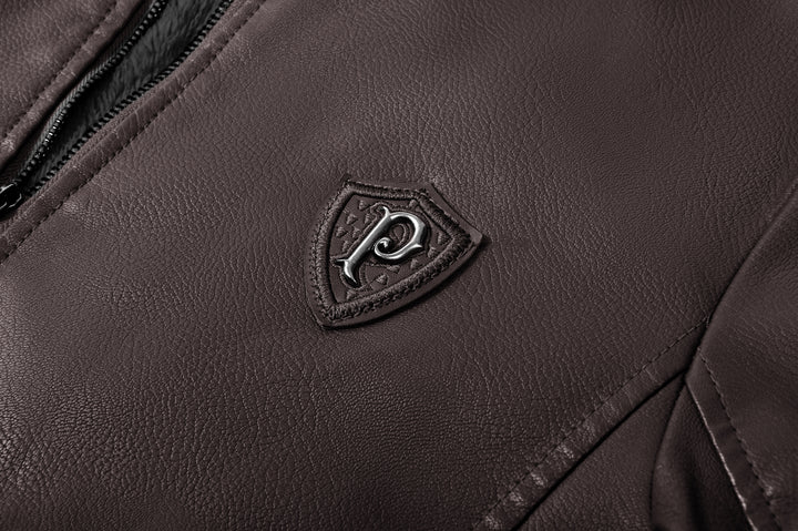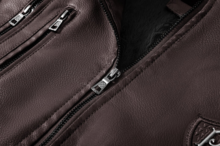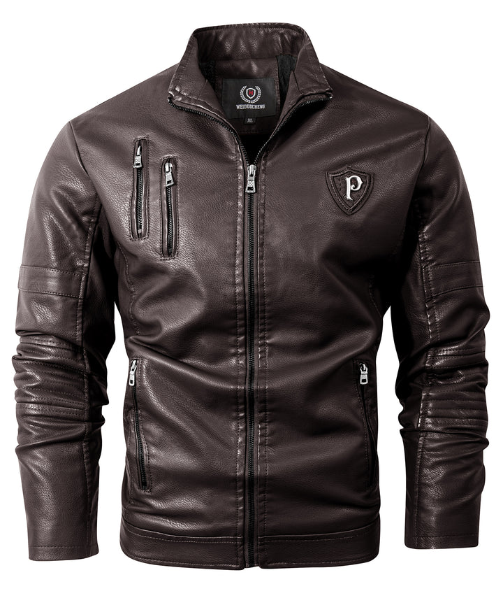 Men's Full Zipper Stand Collar Leather Jacket-ZPK005682