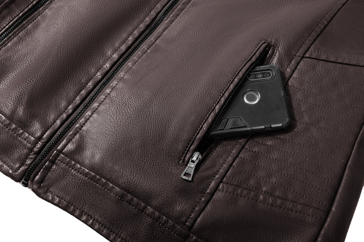 Upgrade your outerwear collection with the Men's Full Zipper Stand Collar Leather Jacket—where sophistication meets everyday wearability.