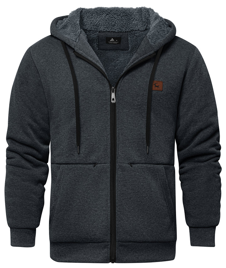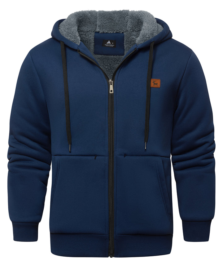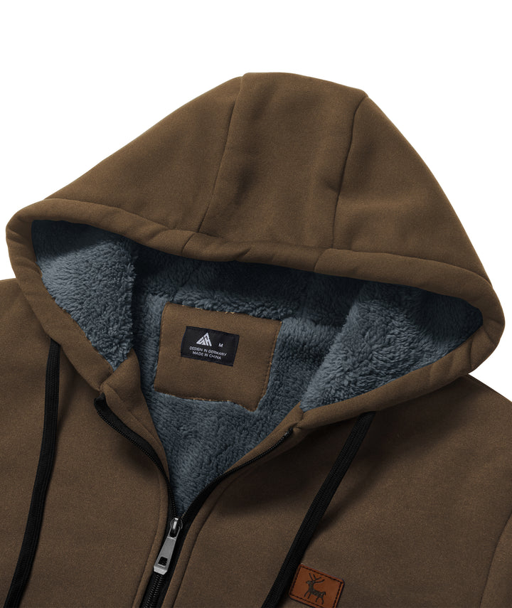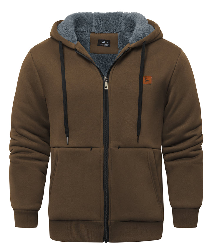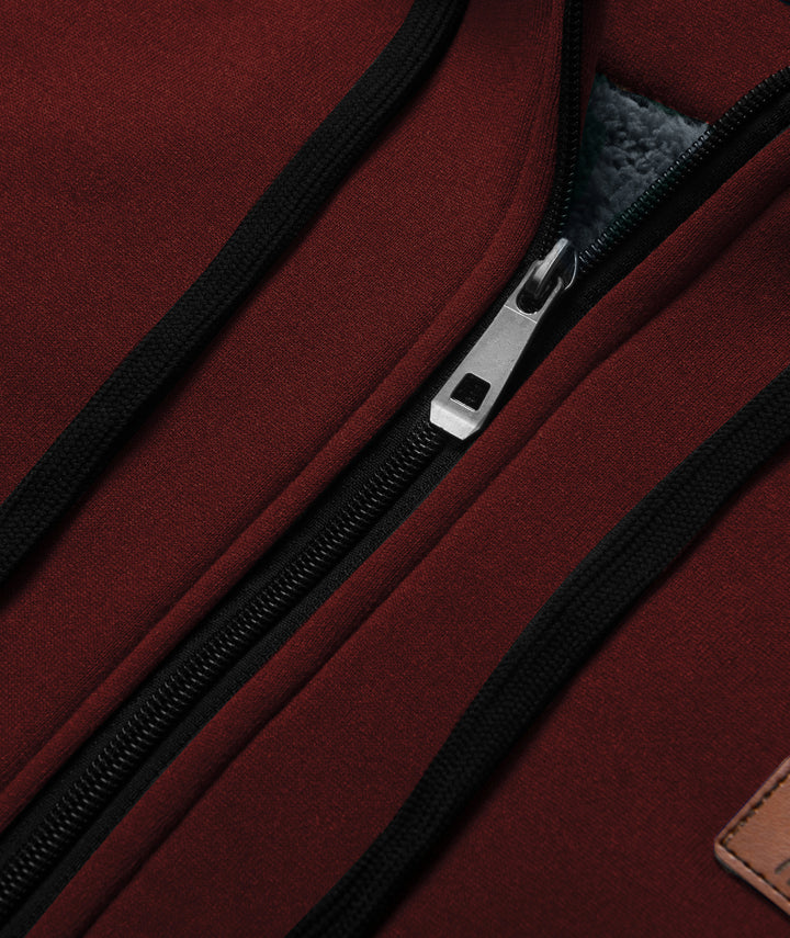 Men's Solid Color Full Zipper Fleece Hoodie-CUMFH04093