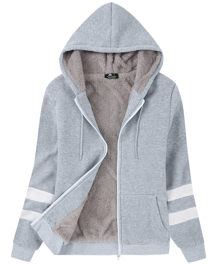 Women's Full Zipper Basic Casual Fleece Hoodie-CUWFH01354